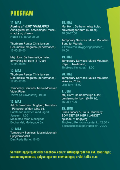 Det sker i forbindelse med samtidskunstfestivalen VISIT TINGBJERG, der ser på bydelen med friske øjne og skaber sociale, deltagerbaserede og samfundsdebatterende kunstprojekter i bydelen.